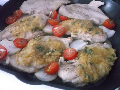 Soczyste białe mięsko z dodatkiem sera, pomidorów i młodej cebulki. Polecam!