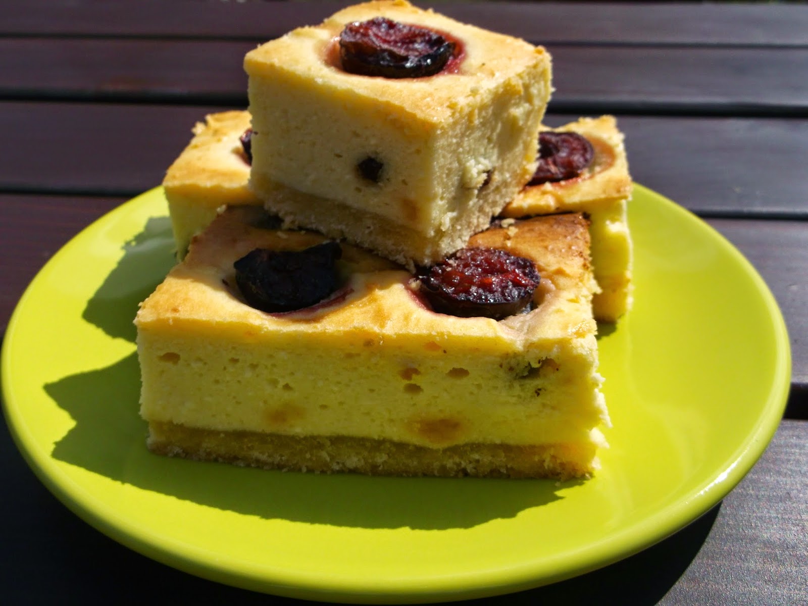 Ciasto rozwałkowujemy na prostokąt. Podczas wałkowania podsypujemy mąką, ponieważ to ciasto jest akurat dość miękkie i klei się do stolnicy. Płat ciasta wykładamy na natłuszczoną blaszkę. Na surowe ciasto wylewamy masę serową, następnie układamy połówki śliwek*. Tak przygotowane ciasto pieczemy przez godzinę, w piekarniku nagrzanym do 200 stopni.